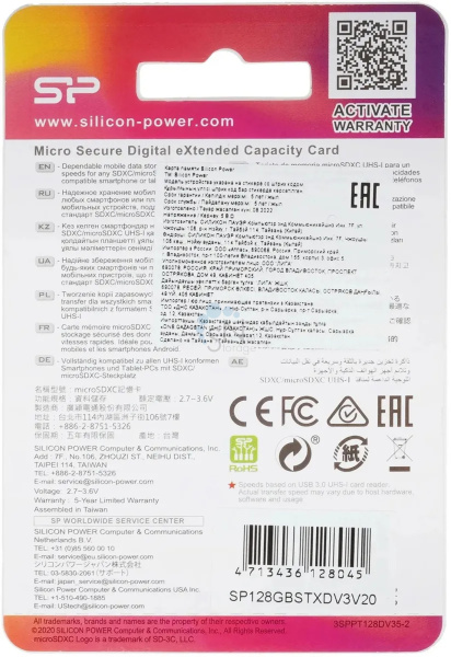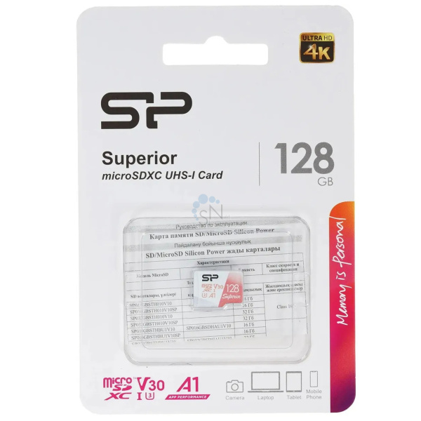 Карта памяти microSDXC 128GB Class10 Silicon Power Superior V30 A1 UHS-I U3 100MB/s