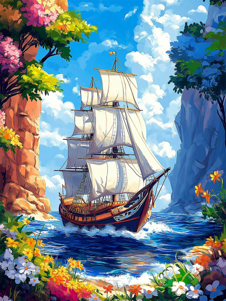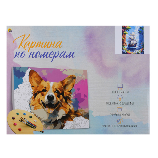 Картина по номерам 30*40 Рыжий кот Корабль у скалистого острова холст на подрамнике ХК-3248