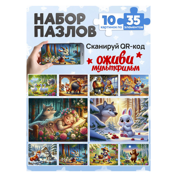 Пазлы 35 элементов Набор 10шт 130*175 Рыжий кот Оживи мультфильм Сказки №1 П35-3491
